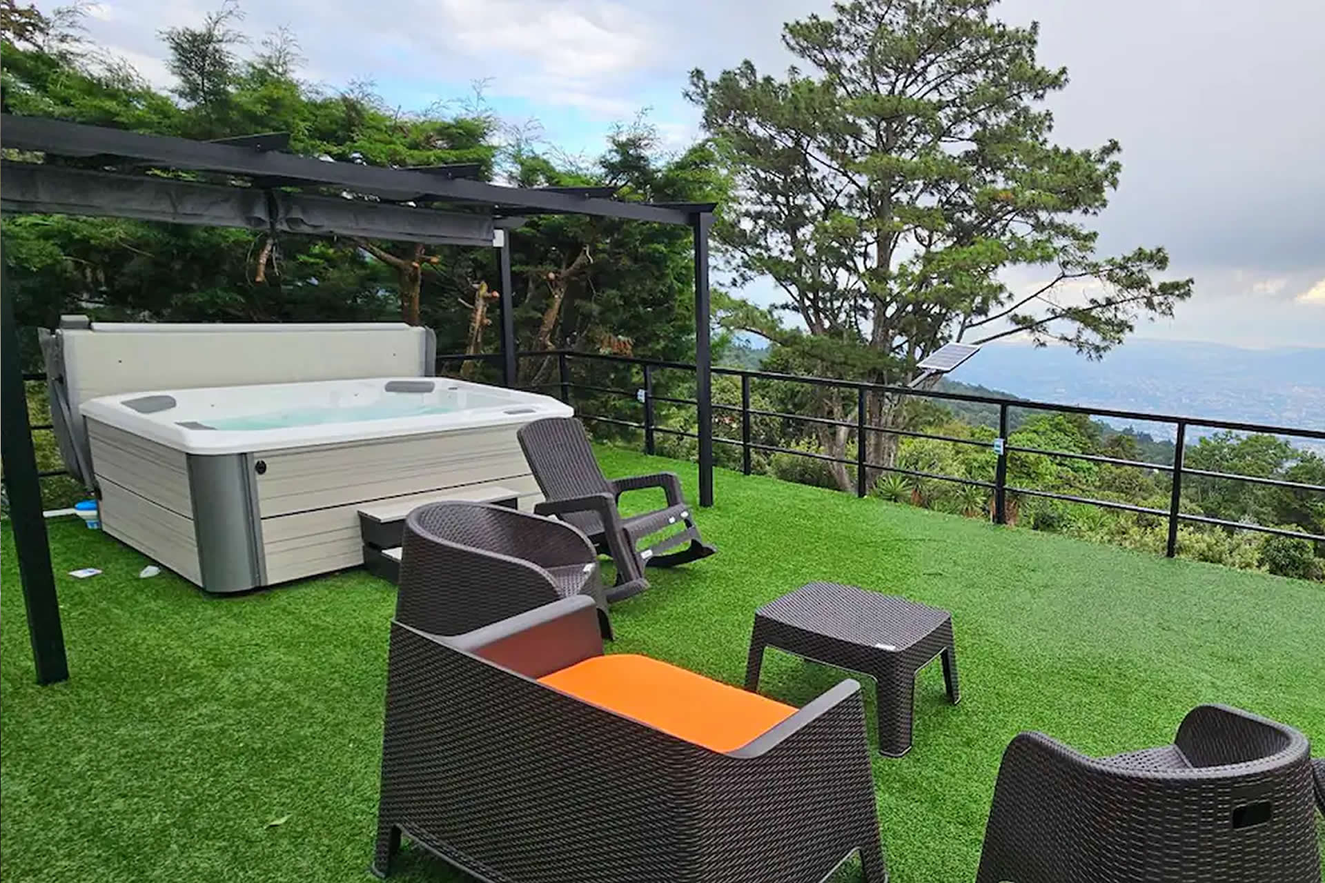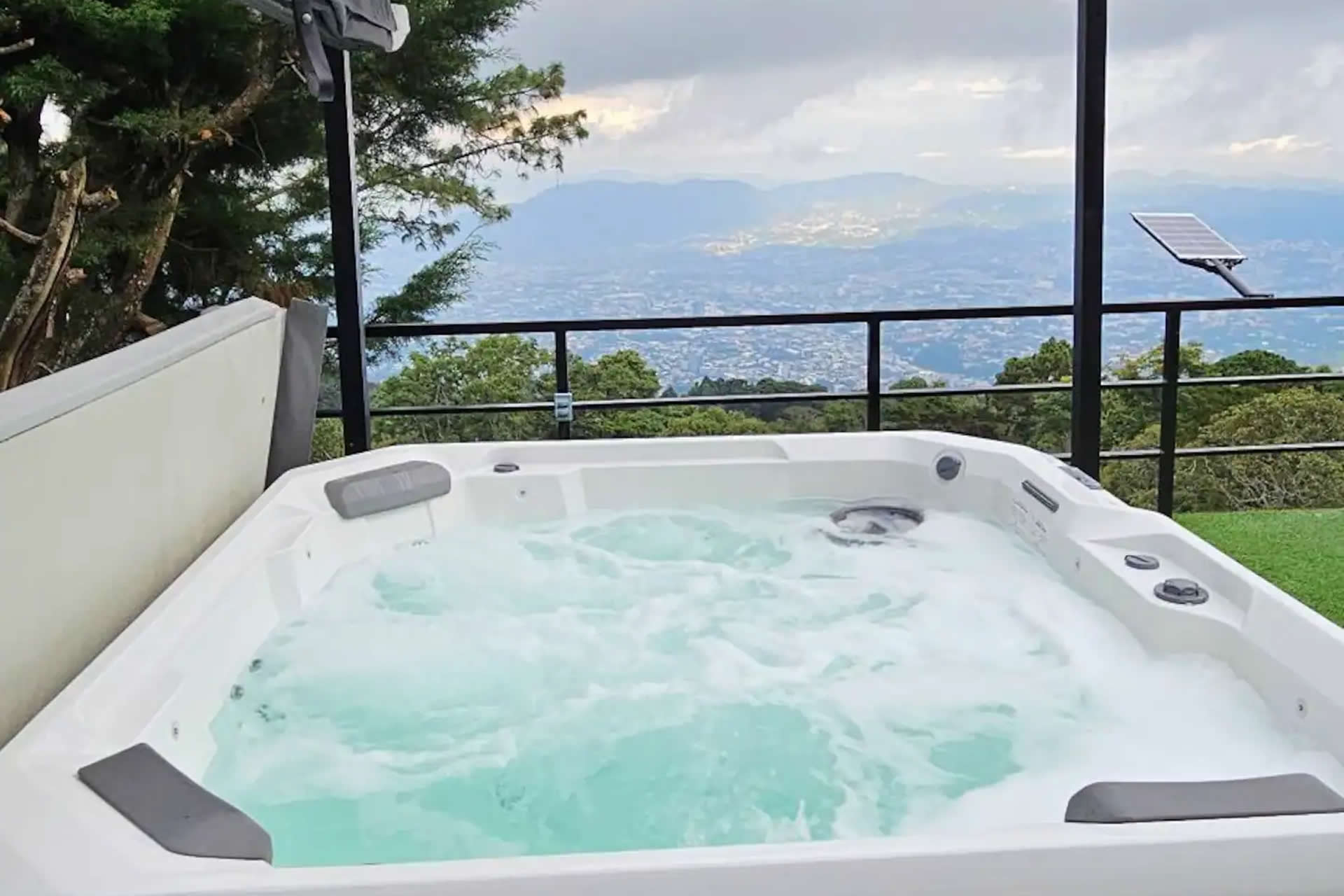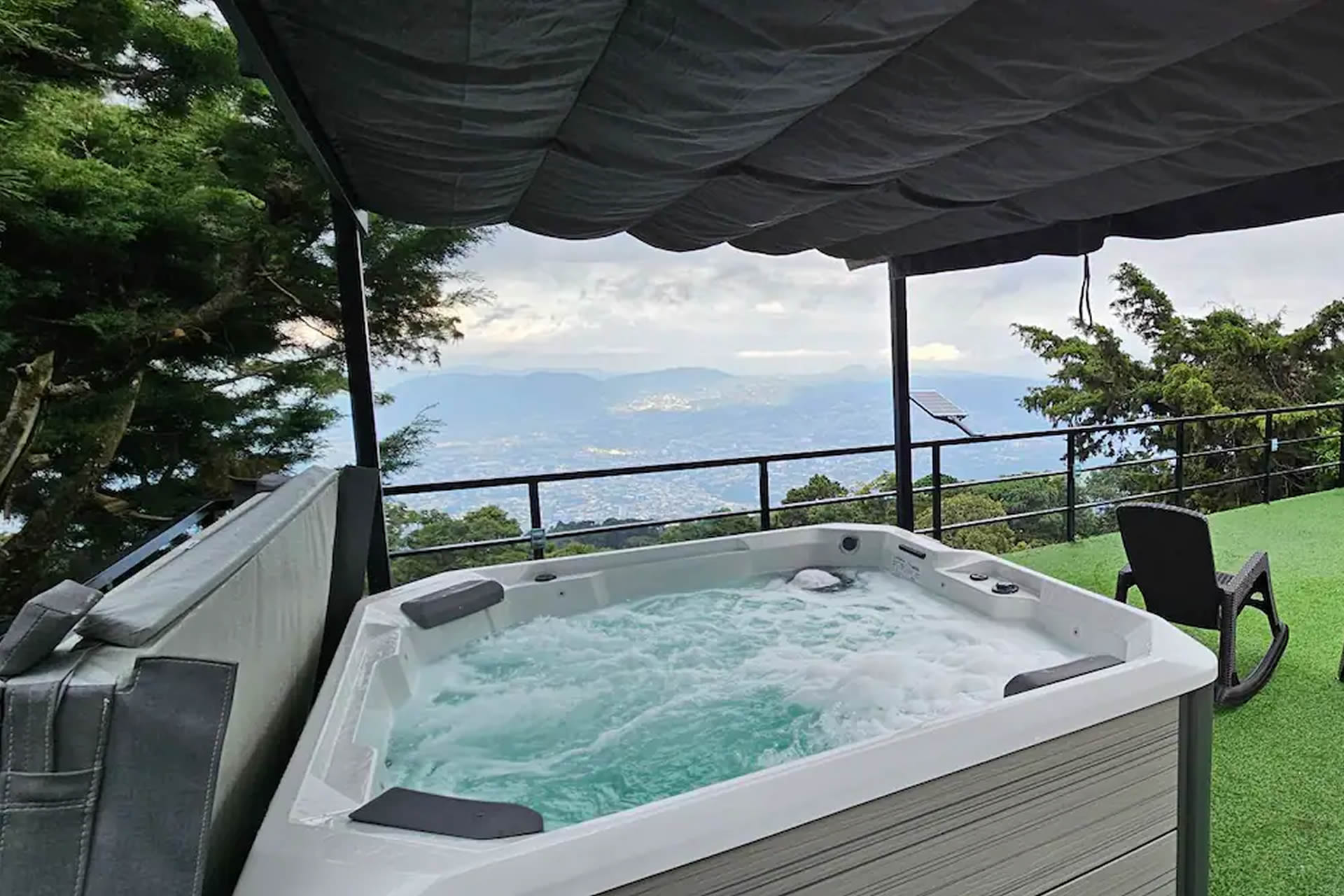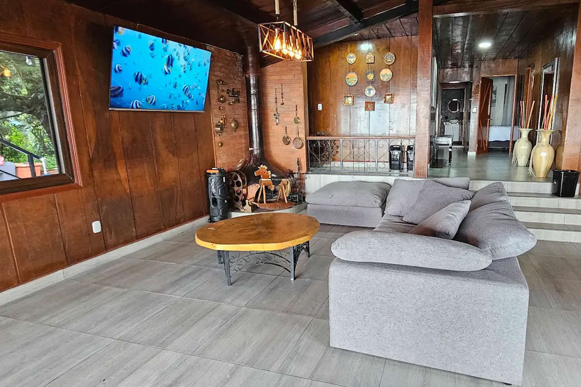 Ven a disfrutar y relajarte en esta hermosa y única cabaña con las mejores vistas de la ciudad, con capacidad para 10 personas. La cabaña tiene jacuzzi y parrilla de barbacoa para disfrutar de reuniones con familiares y amigos. Este lugar tiene un buen clima, muchas habitaciones espaciosas para descansar, la ciudad está a solo 20 minutos y los mejores restaurantes disponibles a 5 minutos. Todo lo que necesitas para disfrutar de tu estancia, duchas de agua caliente, nevera, microondas, cocina totalmente equipada, TV inteligente, wifi, ventiladores, parrilla de gas, chimenea.