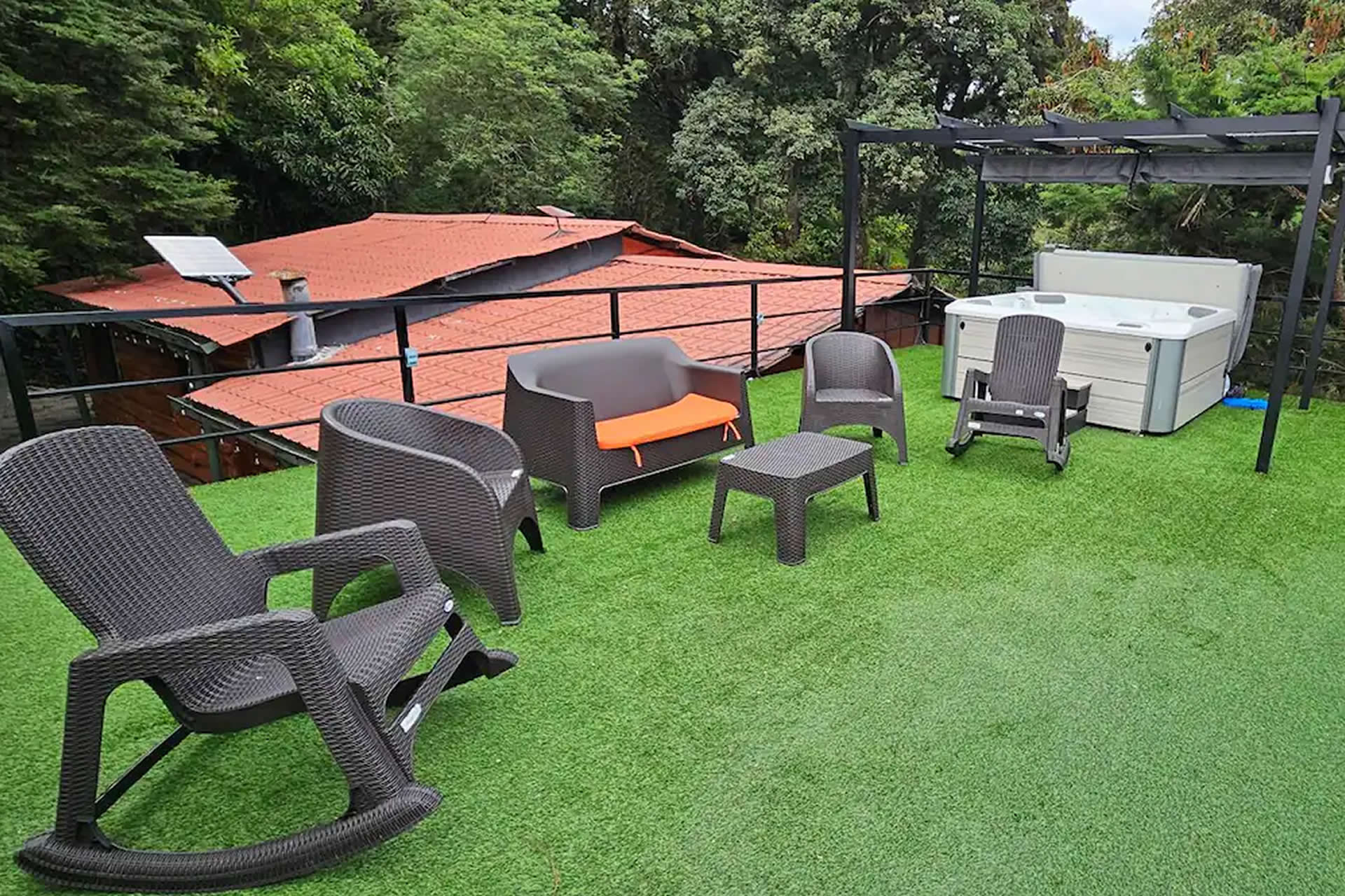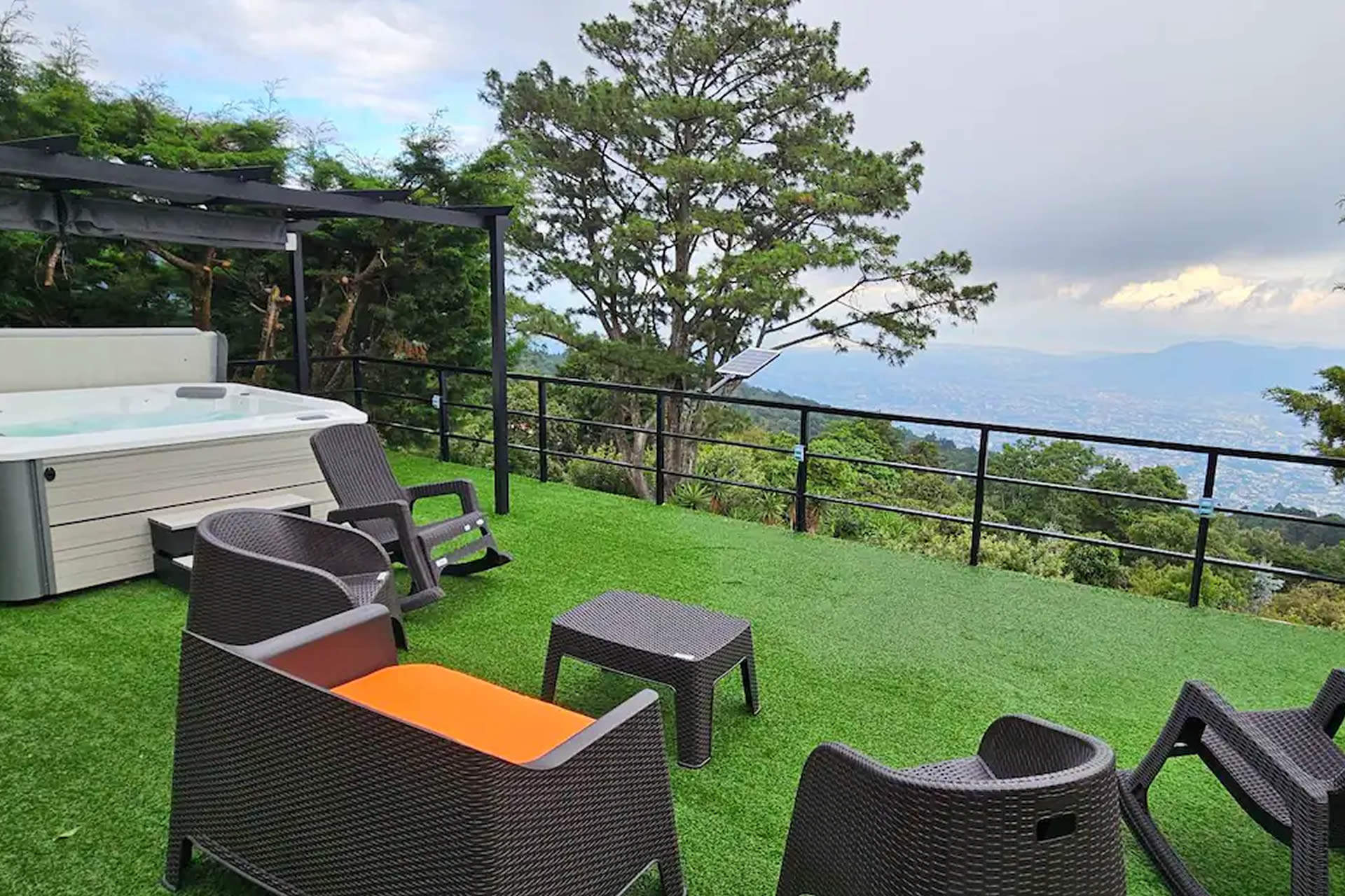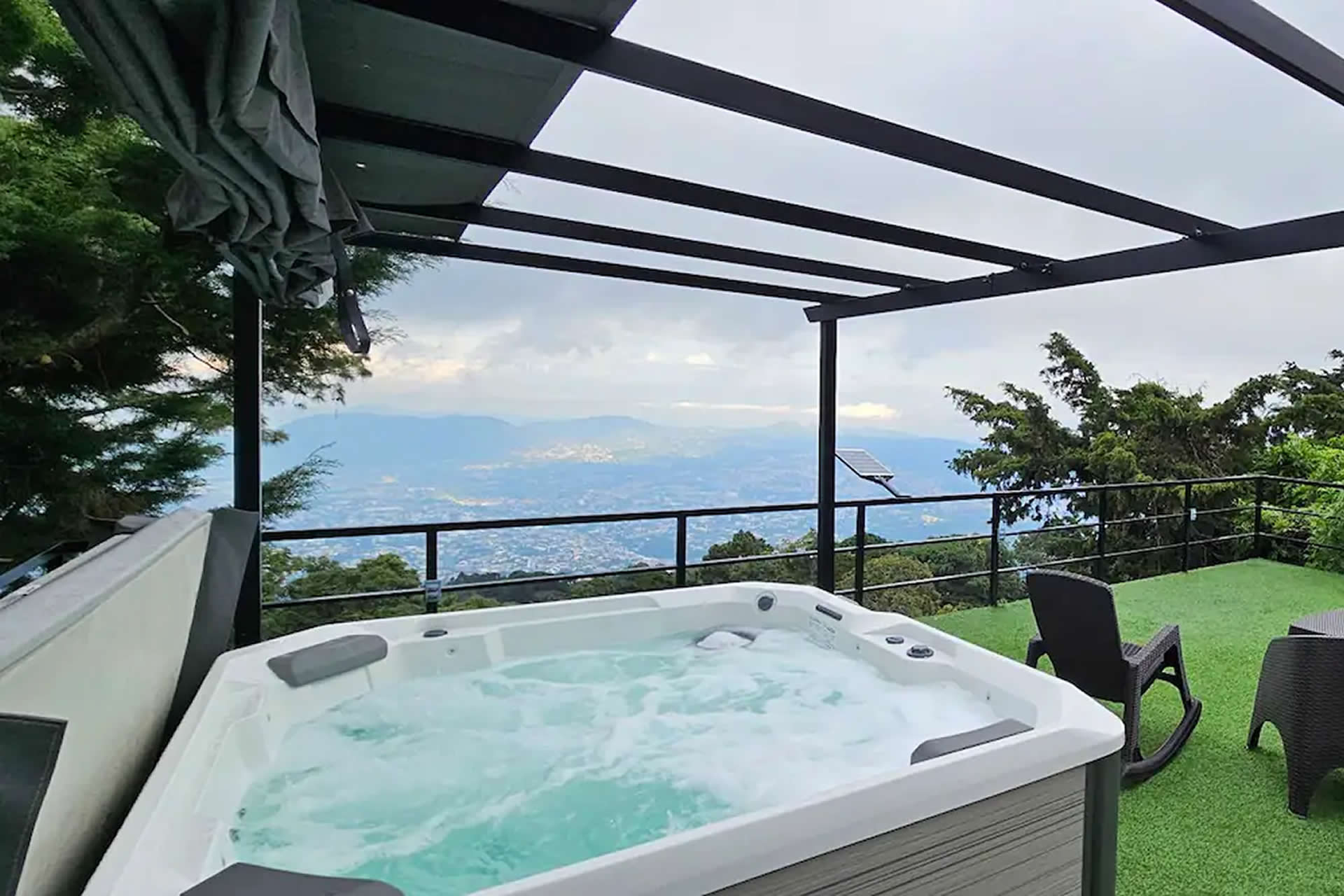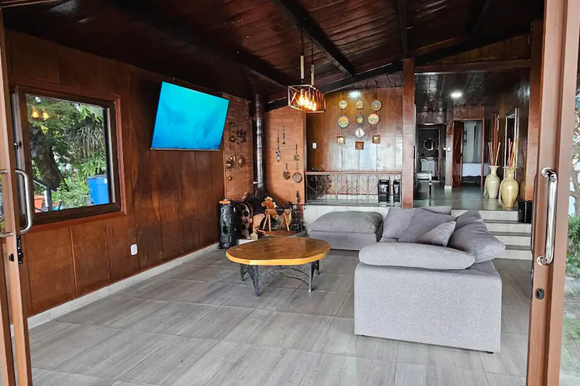 Ven a disfrutar y relajarte en esta hermosa y única cabaña con las mejores vistas de la ciudad, con capacidad para 10 personas. La cabaña tiene jacuzzi y parrilla de barbacoa para disfrutar de reuniones con familiares y amigos. Este lugar tiene un buen clima, muchas habitaciones espaciosas para descansar, la ciudad está a solo 20 minutos y los mejores restaurantes disponibles a 5 minutos. Todo lo que necesitas para disfrutar de tu estancia, duchas de agua caliente, nevera, microondas, cocina totalmente equipada, TV inteligente, wifi, ventiladores, parrilla de gas, chimenea.