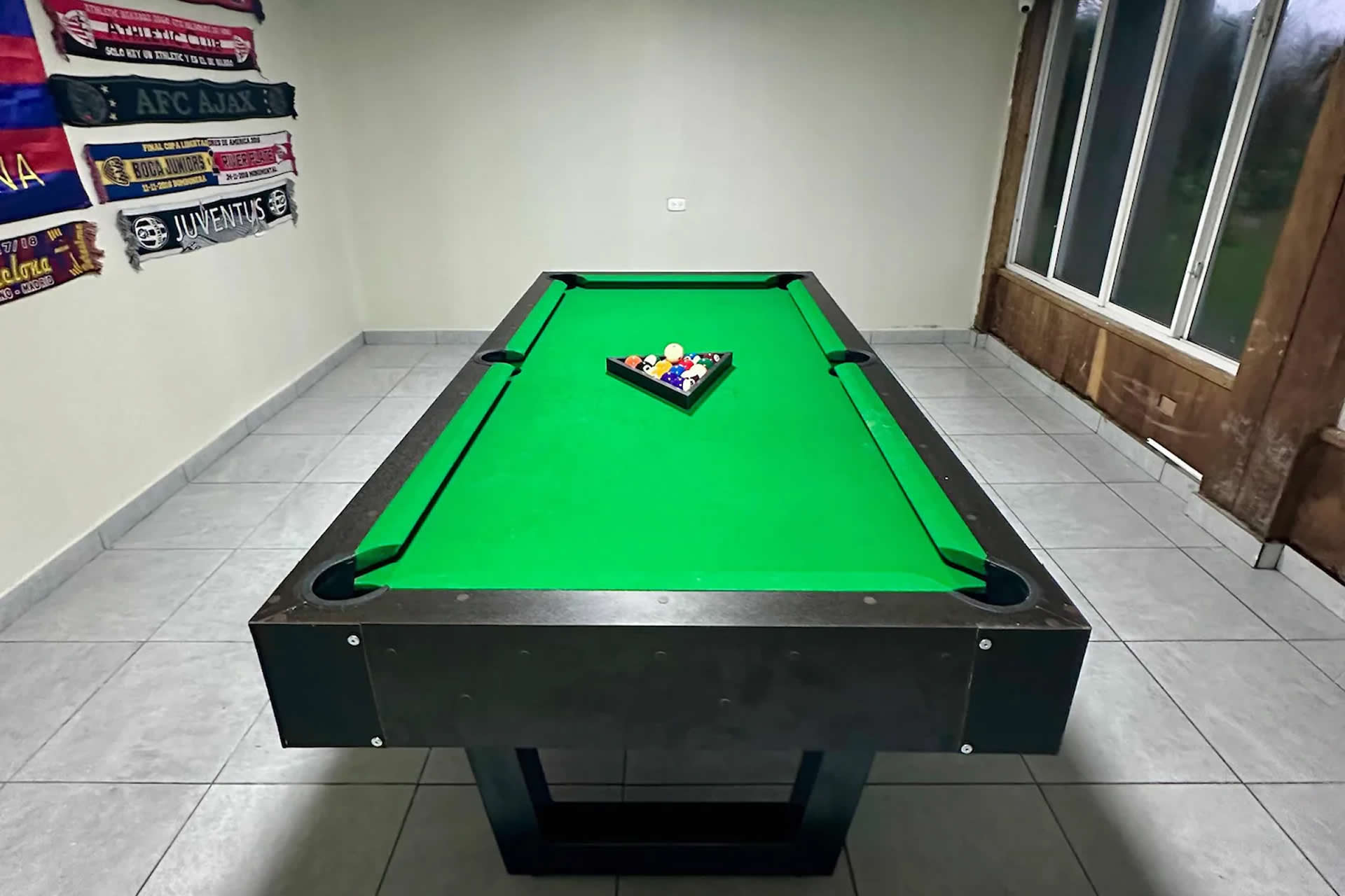 En nuestra acogedora cabaña, ofrecemos el complemento perfecto para esos momentos de relajación y esparcimiento: una mesa de billar de primera calidad. Es el lugar ideal para desafiar a amigos y familiares a una partida amistosa, o simplemente para perfeccionar tus habilidades en el juego. La mesa de billar no es solo un juego, es una invitación a disfrutar de la convivencia y la diversión saludable, rodeados de la tranquilidad y belleza natural que solo nuestra cabaña puede ofrecer.